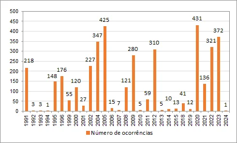 Ocorrências de estiagens e secas no Brasil (1991–2024)